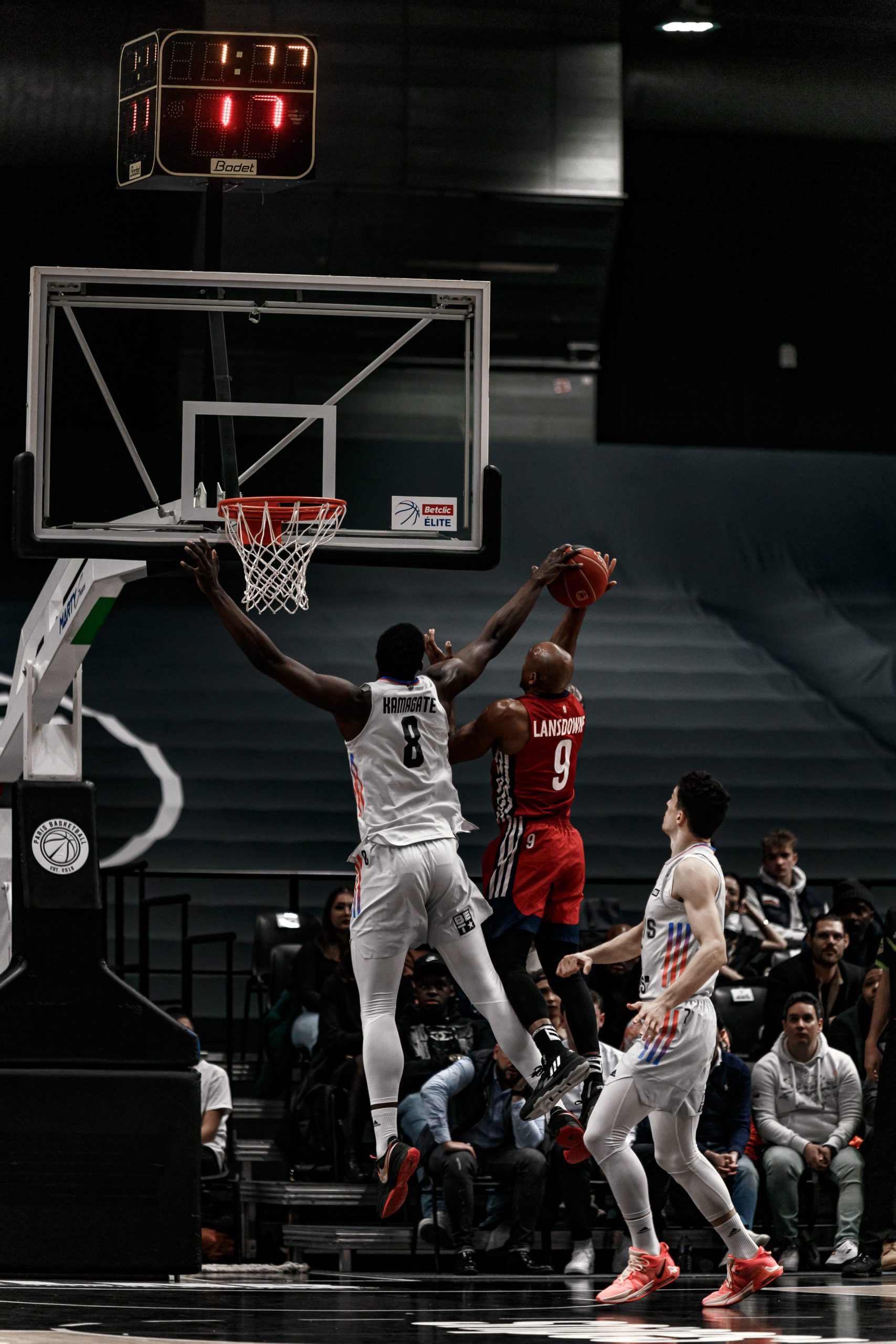 Comment bien commencer ce match ? Allez, facile : and-one de Kyle Allman Jr. Durant tout le match, Paris a imposé son rythme et son style de jeu, pour le plus grand plaisir des spectateurs. Ils n’étaient pas à plaindre puisque notre rythme consiste en : rentrer des trois points, aller dunker sur chaque défenseur, faire des contre-attaques en showtime, des gros contres… Le match est donc rempli de highlights et on vous en résume quelques-uns, c’était difficile de choisir. Aamir Simms nous régale avec 3 trois points dans le match, des célébrations à chaque fois qui le font finir à 13 points, 6 rebonds et 16 d’éval. Il est également à l’origine d’une belle contre-attaque avec une finition ultra-acrobatique. Ismael Kamagate, qui a également fait un chantier dans la raquette enfonce son défenseur et écrase un dunk pour toujours plus energize son équipe. Il finit le match à 8 points, 8 rebonds, 18 d’évaluation et 4 contres ! Not in Isma’s house. Premier quart-temps 29-22 et Paris s’apprête à rouler sur Strasbourg.