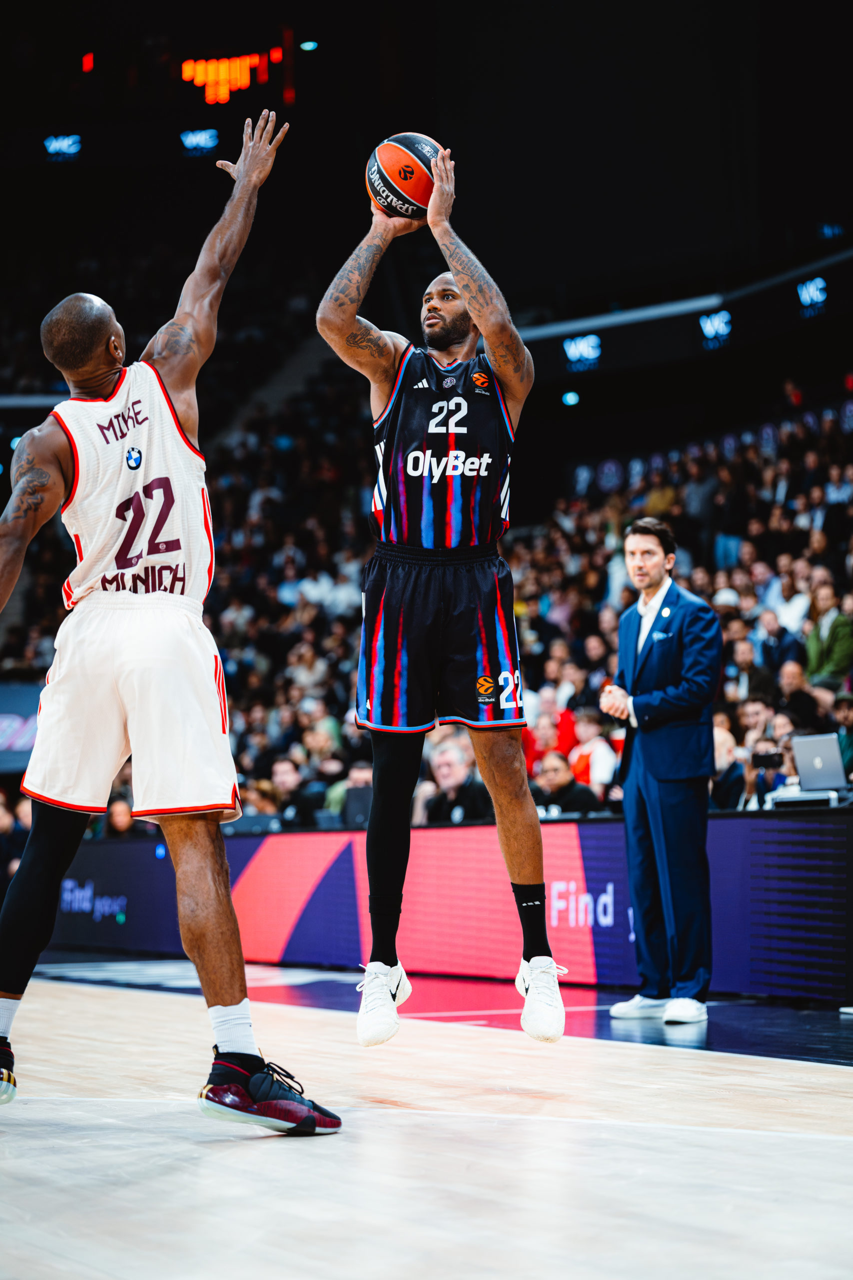 Si les Munichois impressionnent au rebond, nos Parisiens répliquent aussitôt sur de tranchants drives. À 56% derrière l’arc durant la 1ère période, le Bayern prend toutefois l’avantage grâce à des gros runs. Malgré une adresse vacillante, Paris s’adapte et va chercher jusqu’à 9 fautes dans le 2QT pendant que Justin Robinson cumule 14 points en moins de 20 minutes.