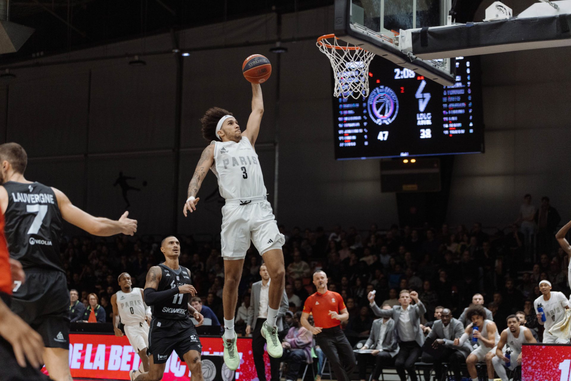 From the outset, the Parisians showed they weren’t there to make up the numbers. A quick 12-5 run forced the Villeurbanne coach to take a time-out, allowing his men to adjust and finish the first quarter ahead. At half-time, it was thanks in particular to a counter-attack by Nadir Hifi, who fed Mehdy Ngouama perfectly in the corner for a 3, and a big dunk by a furious Tyson Ward that the home team went home with a 10-point lead (57-47).