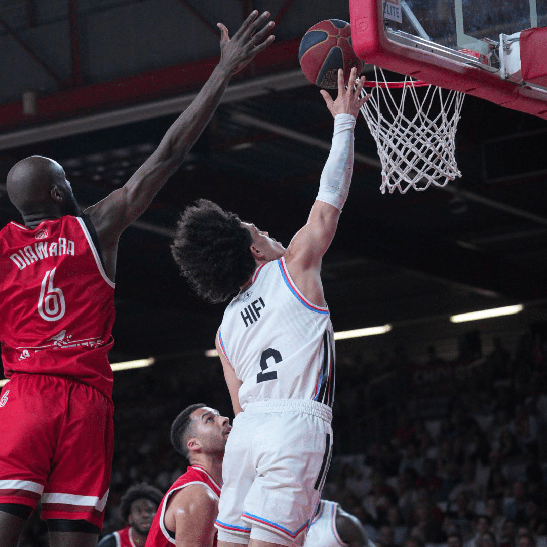 Justin, Daulton, and then Nadir set the tone from the three-point line. Our fluid ball movement creates space for our shooters, who then simply have to let their talent shine. Especially since Cholet’s offense is proving less precise. Hampered by the pressure from our Parisians, the home team concedes steals, extends their possession, and finds themselves pushed far from the basket. This is compounded by a loss of rebounding dominance and a plummeting shooting percentage. Paris Basketball has decided to raise its game without warning, leaving Cholet completely overwhelmed! Inspired up front, our players are particularly impressive on defense. A fantastic comeback, slightly hampered by a series of brilliant plays from the opposition at the end of the 3rd quarter (68-74). BC is finding its form again, and this is confirmed at the start of the 4th quarter. A run of success that Justin’s layup and Seba’s corner attempt slow down. Despite their efforts, Paris Basketball can’t get below a two-possession deficit. Finally, just before the final buzzer! Nadir takes advantage of a superb screen to break free from his guard, rise up, and sink a long-range shot. For the first time in the game, Paris leads (89-88)! Shaken, the MauligĂ©riens launch a series of sloppy attacks. We extend our lead, but Cholet gives themselves one last chance to believe with this shot from Terrance Campbell with 10 seconds left on the clock (93-93). As the crowd prepares for overtime… Justin seals the game once and for all with a clutch three-pointer (99-93)!